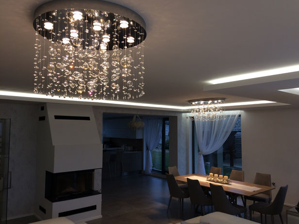 This elegant chandelier is decorated with the finest crystal blown bubbles. Gold or silver coloured metal parts are provided with a protective layer. The chandelier comes with highly polished stainless steel mirror that further enhances the magical glow of the chandelier.